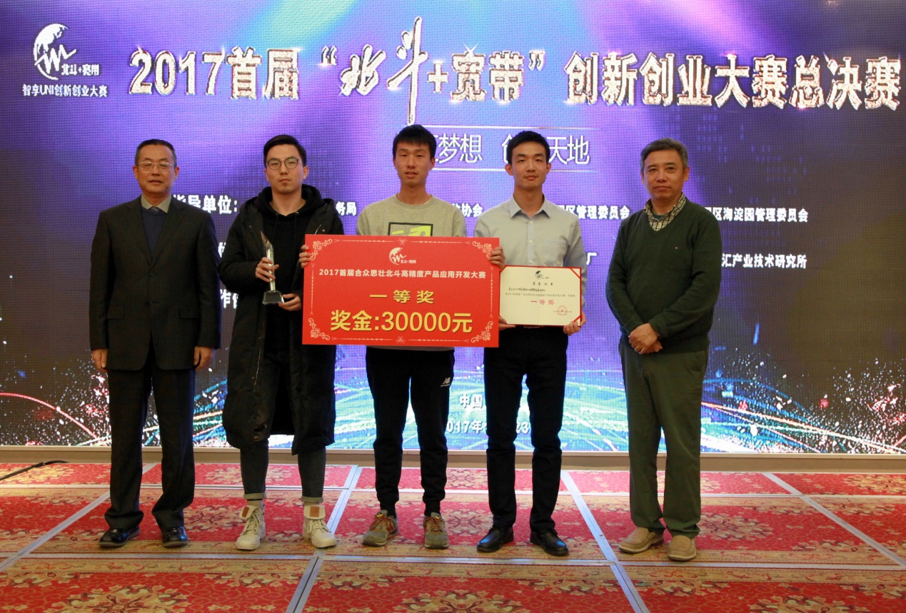 20171123日,首届北斗+宽带创新创业大赛决赛在北京北邮科技酒店落下帷幕。经过激烈角逐,我院张绍成老师指导的团队(参赛成员:黄龙强、黄诚、殷飞、王鑫哲)的“基于GNSS与视觉辅助的快速集装箱装卸平台”项目获得指定项目——“合众思壮北斗高精度产品应用开发大赛”一等奖。