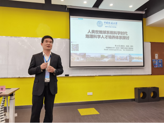 在地理学人才培养体系分论坛上,副院长宋小青以“人类世地球系统科学时代地理科学专业人才培养体系探讨”为题进行了汇报交流。他指出,在人类世地球系统科学时代,坚持地理学“人-地”双向耦合核心领域,构建目标-能力体系、师资-团队体系、课程-资源体系,坚持野外基地化育人、师资团队式育人、科教融合育人,对于地理科学本科专业人才培养具有重要意义。同时,他介绍了我校地理科学专业本科人才培养体系及其实践进展。