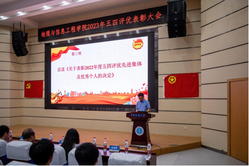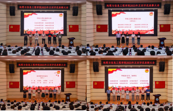 在颁奖环节,院长王绍强和未来城校区管理办公室副主任罗勋鹤分别为获评“五四红旗团支部”的本科生、研究生团支部颁发荣誉证书;党委书记孙莉为获评十大学生标兵及研究生标兵同学颁发荣誉证书;党委副书记武彦斌为获评学院“好支书、好班长”的同学颁发荣誉证书;学院党政办李洋、张振分别为获评学院“优秀共青团干”的本研同学颁发荣誉证书;陈涛和李天琪为获评“优秀共青团员”的本科生颁发荣誉证书,罗增良为获评“优秀共青团员”的研究生颁发荣誉证书;穆巴热克为2023年“百名支书讲团课”大赛获院级荣誉称号的团支书颁发荣誉证书;辅导员张恪为学院2022年度志愿服务工作中获得表彰的同学颁发荣誉证书;辅导员李天琪为学院2022年度新闻宣传工作中获得表彰的同学颁发荣誉证书。