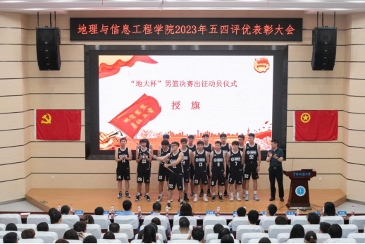 金沙js4399首页男子篮球队在今年的“地大杯”篮球赛中突破重围进入决赛,表彰仪式设置特别环节为球队加油鼓劲。院长王绍强为学院男子篮球队出征“地大杯”决赛授旗,队长曹斌代表男子篮球队发言并表示将不负学院期望,在决赛中赛出金沙js4399首页学子的风采,赛出金沙js4399首页男子篮球队的水平。与会人员集体为学院男子篮球队加油。