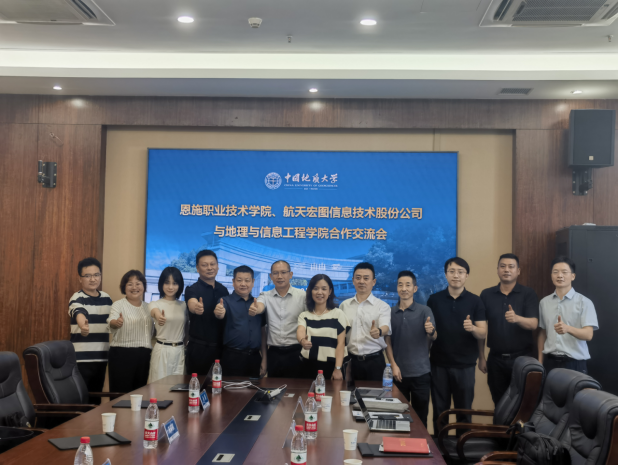 2023年9月19日,恩施职业技术学院党委副书记、副院长吴云、航天宏图信息技术股份公司副总经理左红祥等一行八人到访我院,就三方共建遥感行业产教融合共同体进行座谈交流。学院党委书记孙莉、院长王绍强、学科与社会合作办主任曾杰、校宣传部副部长(挂职)王猛猛、校社会合作处副处长(挂职)朱琪褀出席座谈会。