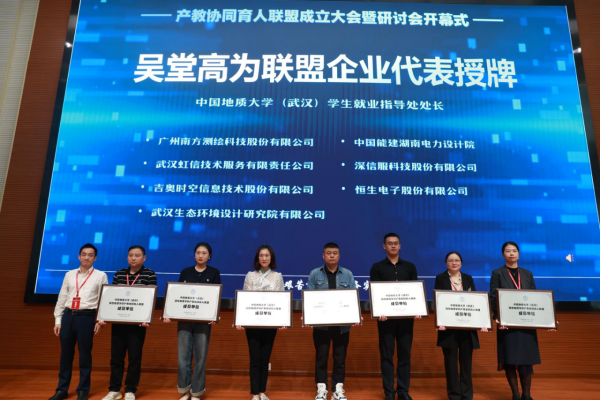 上海华测导航技术股份有限公司武汉基地副总经理陈丽作为联盟成员单位代表发言。她谈到,“致天下之志者在于人才”,华测导航作为卫星导航测绘领域的重点企业,与地大建立了长期的深度合作。联盟的成立有利于校企一同加大产学研深度融合,探索产业协同育人的新思路,华测导航将与联盟单位共同为行业的高质量发展贡献力量。