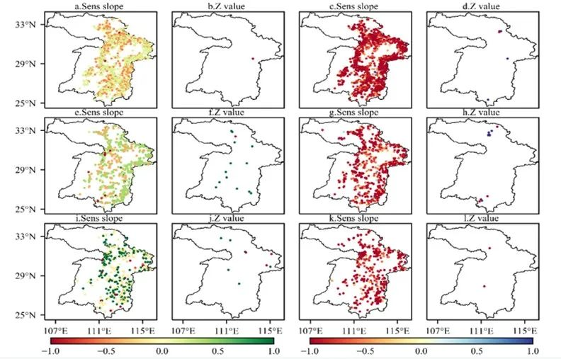基于LULC数据,研究借助FRAGSTATS 4.2、InVEST 3.12模型以及RSEI计算公式,多角度评估湿地生态健康水平。从湿地地理情况特征、生物栖息地质量、综合生态质量三个维度评定长江中游流域湿地生态现状,通过从三个方面多角度的对湿地生态质量进行综合性描述,提高未来生态模拟的准确性和合理性。