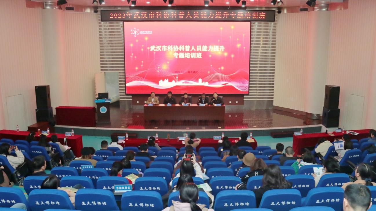 为进一步加强科普工作,提升科普人员能力素质,有效增强武汉城市科普能力,助力武汉建设具有全国影响力的科技创新中心,11月16日,2023年第二期武汉市科协科普人员能力提升专题培训班在中国地质大学逸夫博物馆开班。武汉市科协党组成员、副主席郑华出席开班仪式并作动员讲话,我院关庆锋副院长致辞,开班仪式由市科协科普部副部长吴宇明主持。