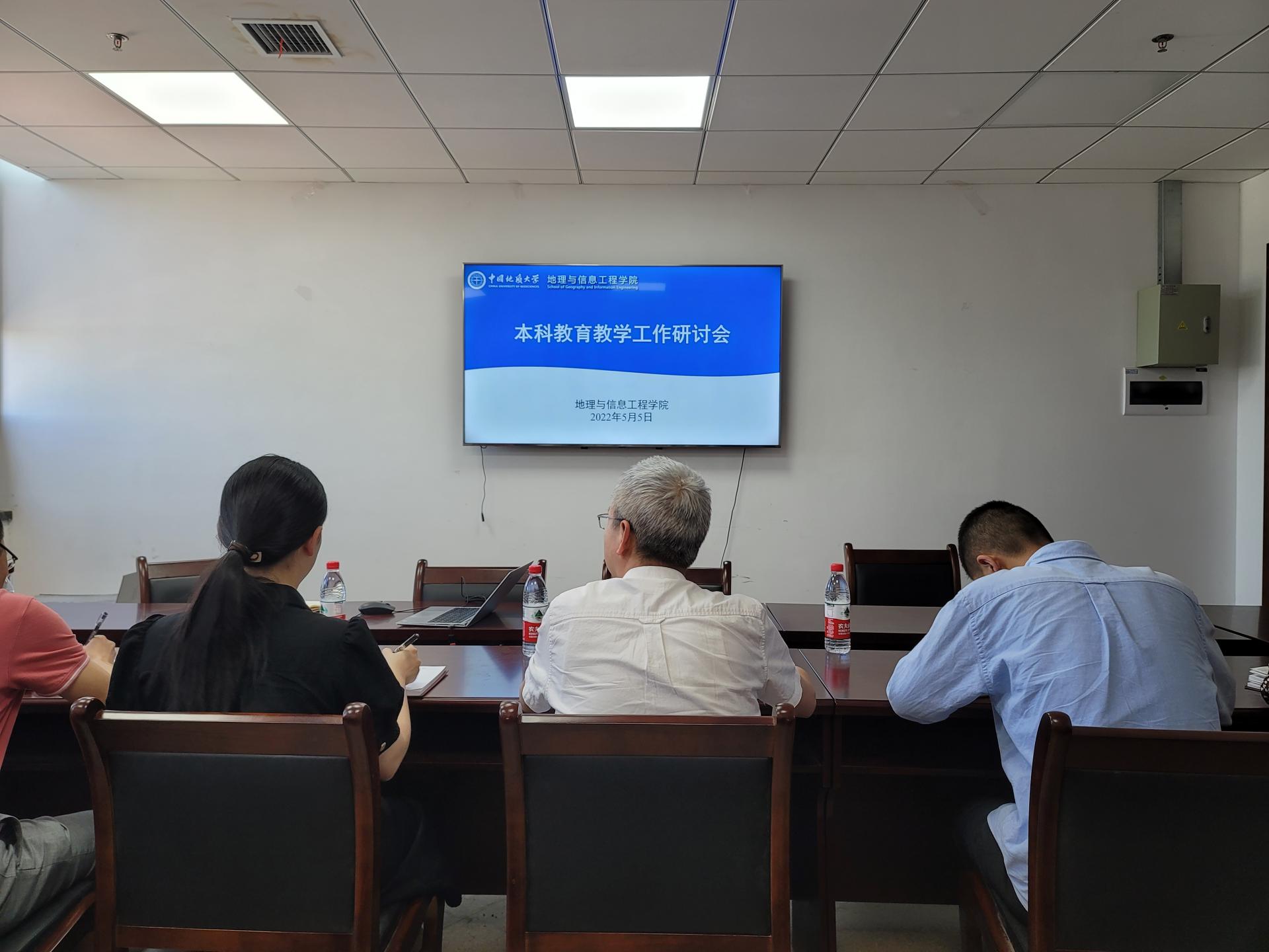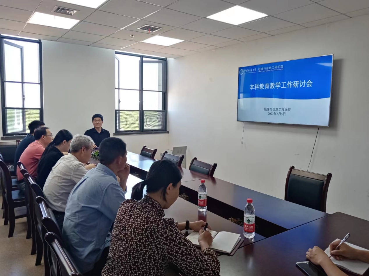 2022年5月5日,金沙js4399首页在中国地质大学(武汉)未来城校区科教八楼577会议室召开本科教育教学工作研讨会。会议通过线上线下相结合的方式进行。学院党委书记许德华,院长王绍强,副院长宋小青、王伦澈,各系书记、主任及班子成员,教学办、学工办和锐思新媒体学生骨干参会。