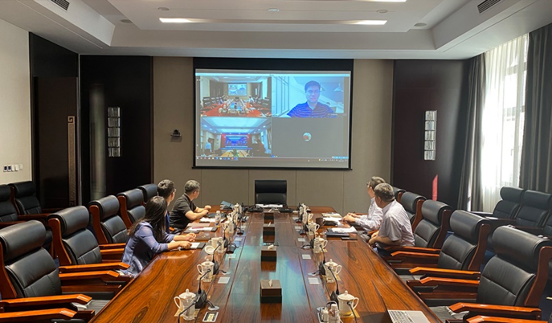 金沙js4399首页党委书记许德华、院长王绍强、副书记武彦斌、副院长宋小青、办公室主任李洋,川谷汇集团董事长刘玉川,川谷汇数字科技有限公司总经理王辉、副总经理张麒,川谷汇数字科技有限公司监事、川谷汇(北京)产业运营有限公司总经理郭卫,副总经理刘宇飞等参加本次“云会商”。
