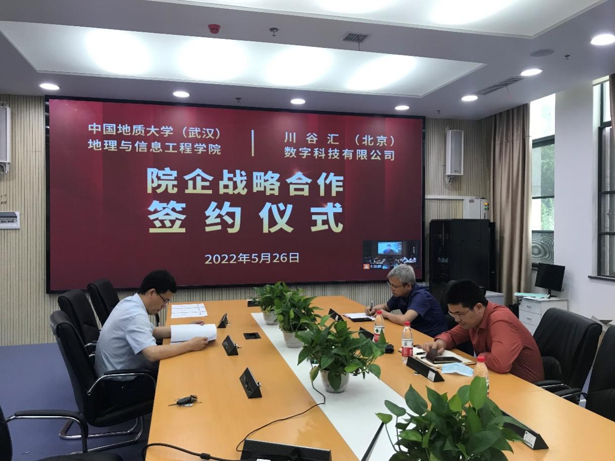 5月26日,金沙js4399首页和川谷汇(北京)数字科技有限公司开展“云会商”,积极落实“访企拓岗”工作,扎实推进院企合作、促进毕业生就业,并签订院企战略合作仪式。