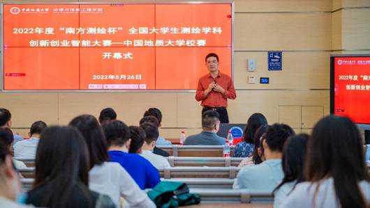 为进一步落实立德树人根本任务要求和实践育人教学方针,更好发挥我校测绘学科特色与优势,培养测绘类专业大学生创新创业意识和能力,金沙js4399首页于2022年5月26日在未来城校区举行2022年度全国大学生测绘学科创新创业智能大赛中国地质大学(武汉)校赛开幕式。