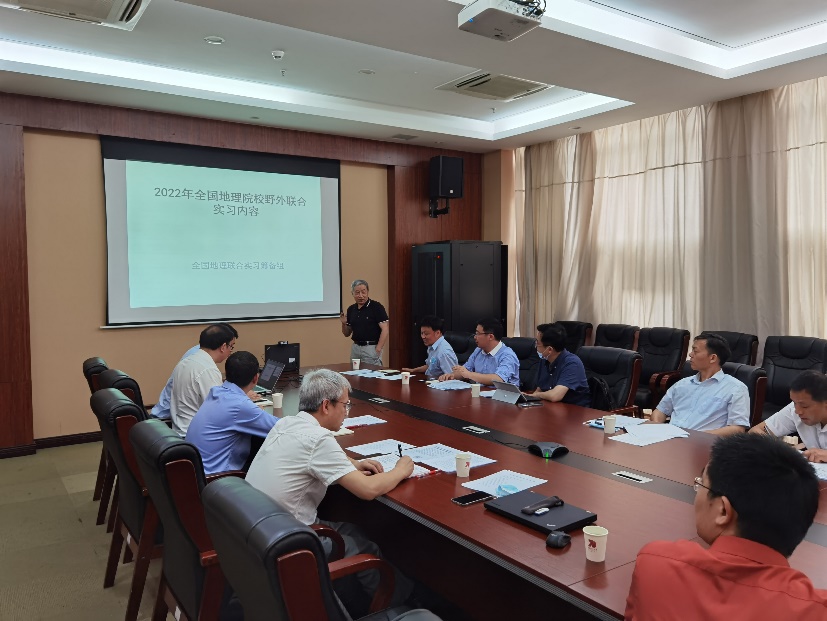 2022年5月29日上午,第十三届全国高校地理学联合实习第五次筹备会议在中国地质大学(武汉)东区综合楼B702会议室召开,会议通过线上线下相结合的方式进行。
