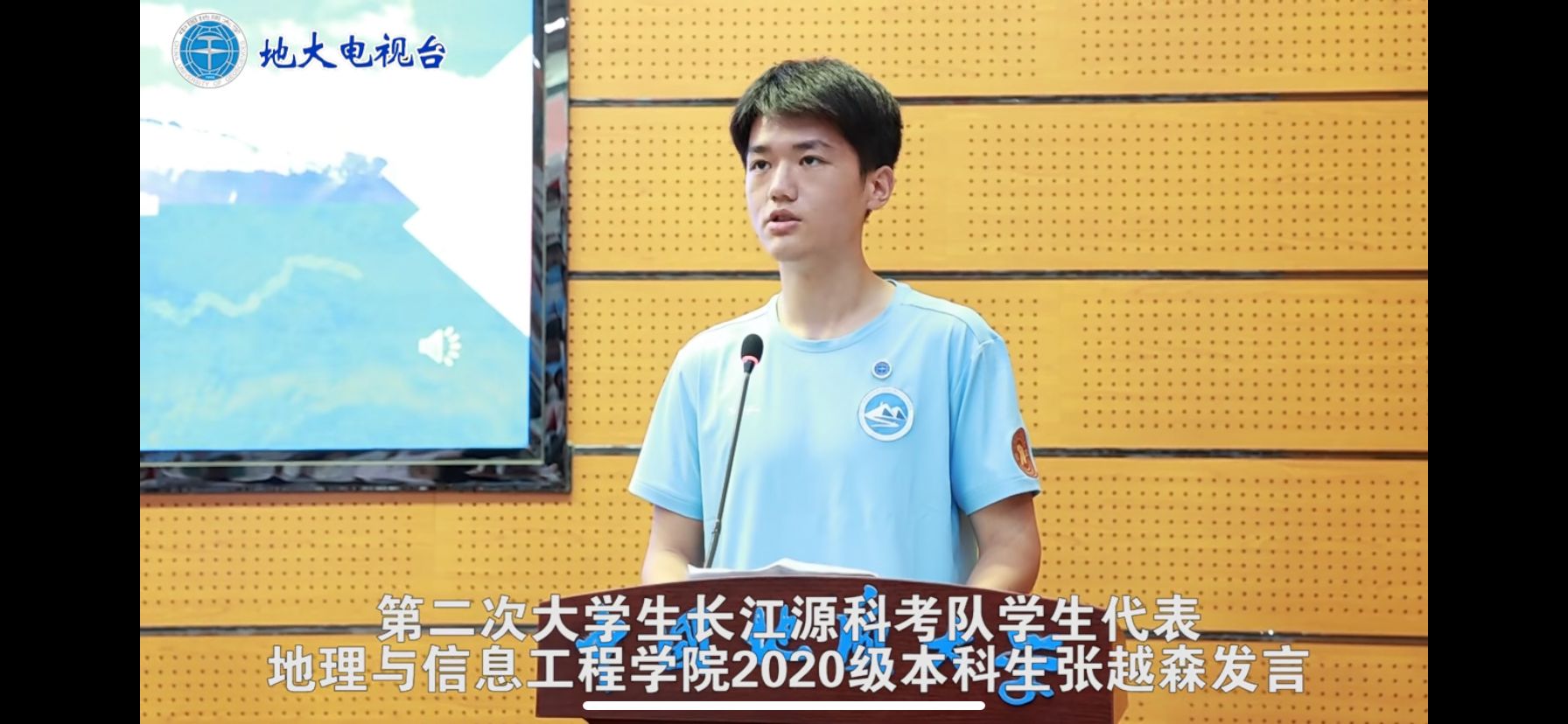 我院地理信息科学专业2020级本科生张越森通过层层选拔,成为了第二次大学生长江源科考地理组的一员。作为学生发言代表,在科考出征仪式上,他激动地说:“科考队训练的三个多月里,我不仅收获了强健的体魄和专业技能,更增强了专业报国的认知和意识。每天十公里跑、400米间歇、爬楼、仰卧两头起,我们撒下的每一滴汗水,迈出的每一个步伐,都是为了践行习近平总书记倡导的‘长江大保护’理念。”