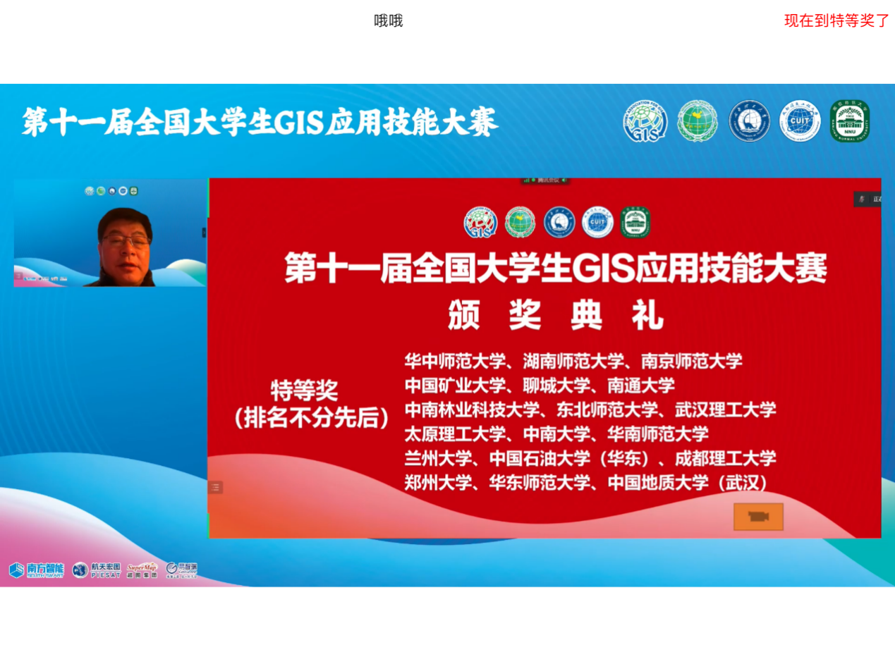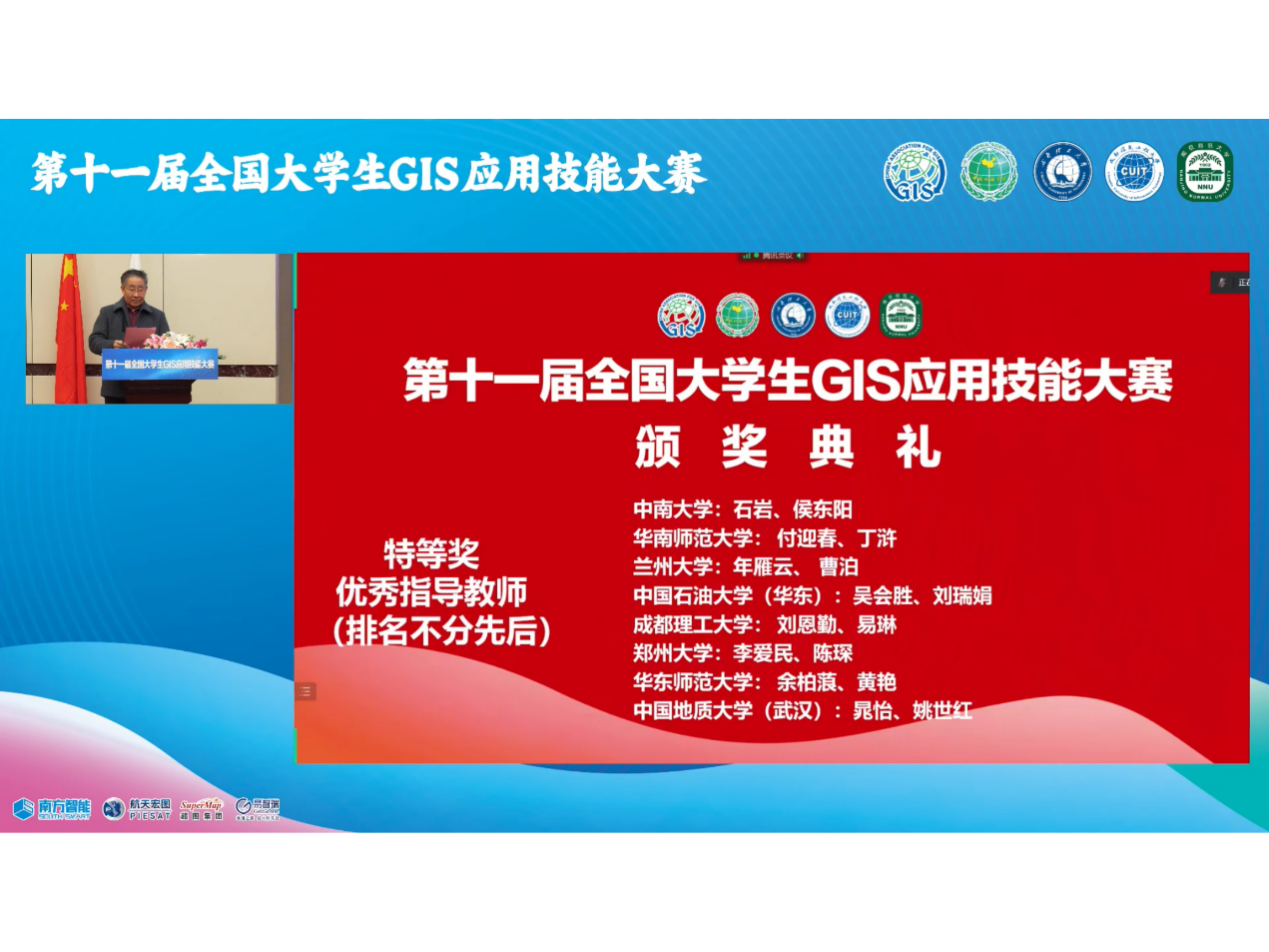 2022年11月19日,第十四届全国高校GIS技能大赛网络答辩顺利举行,金沙js4399首页参赛队荣获“特等奖”,我院空间信息系晁怡副教授和姚世红副教授荣获“优秀指导教师”。