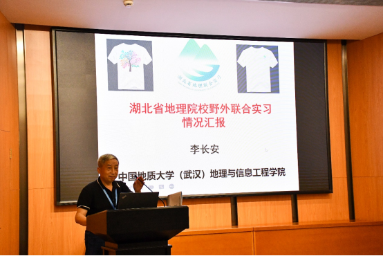 本次会议商议成立了全国大学生地理学联合实践教学高校联盟,进行了实习联盟的章程(草案)组织构建及实施等议题的讨论,落实和讨论2021年第十二届全国地理学野外联合实习事宜。我校被推举为联盟理事单位,李长安教授被教育部地理学教指委聘任为全国野外联合实习指导专家,并作了“湖北省地理院校野外联合实习情况汇报”的大会报告,受到全场专家学者的广泛关注和认可。