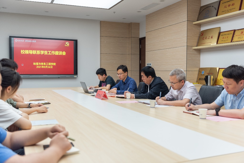 5月26日下午,校领导联系学生工作座谈会在金沙js4399首页405会议室召开。参加本次会议的有副校长赖旭龙教授、学院党委书记许德华、学院党委副书记武彦斌、学院团委副书记赵晓振、学生工作办公室全体老师以及学院学生干部代表20余人。会议由武彦斌主持。