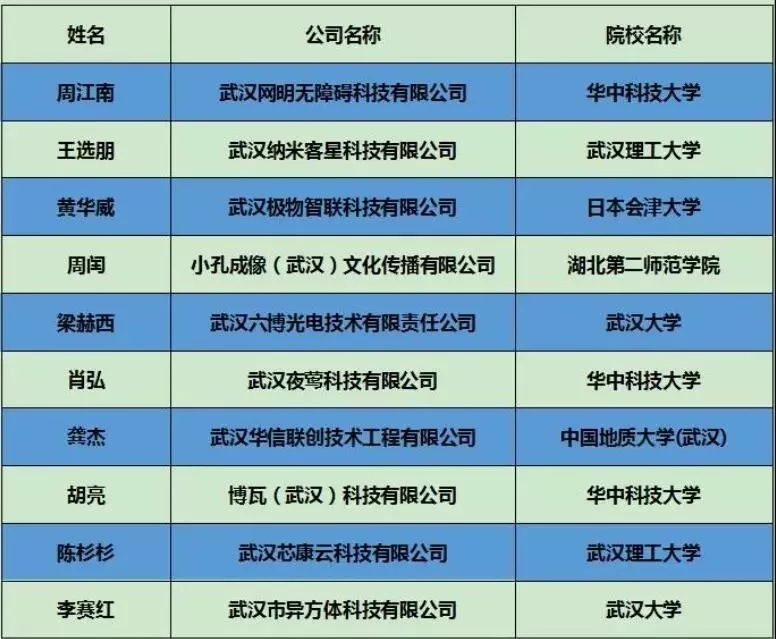 附2019湖北大学生创业十强名单