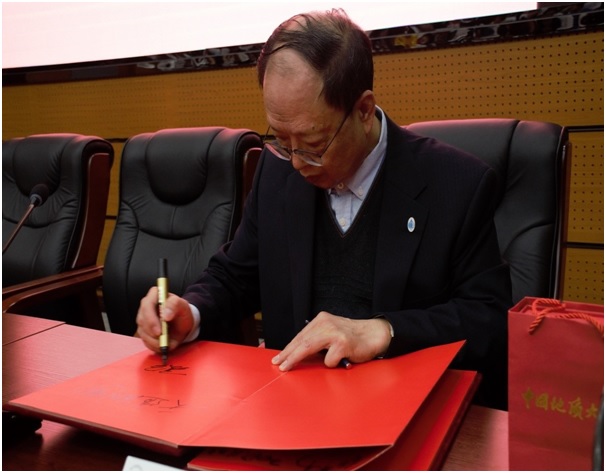 最后,夏军教授在嘉宾题词簿上题下“天道酬勤”,希望同学们永葆持之以恒的精神,用不懈的勤奋努力,去追寻梦想!