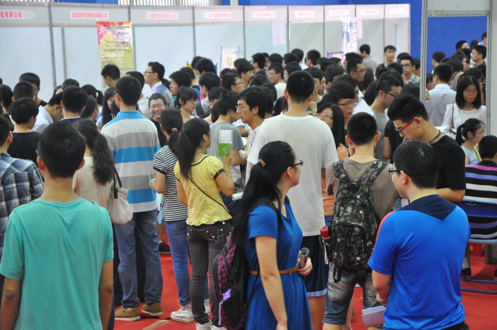双选会现场人头攒动,各企业单位都贴出了自己的宣传海报,招聘岗位和要求一目了然,大批同学驻足仔细观看了公司介绍和招聘要求,并积极与用人单位沟通交流。用人单位也求贤若渴,纷纷打出“共创辉煌,招纳贤士”,“追求卓越,诚信务实”等招聘标语。同学们纷纷向心仪的企业投出简历,并在现场有序的排队进行初步的面试和咨询,更有来自其他院校(武汉理工大学、中南民族大学等)的同学也闻讯而来,部分企业还设有笔试,成功进入第二轮笔试的同学们则在一旁认真答题,奋笔疾书。