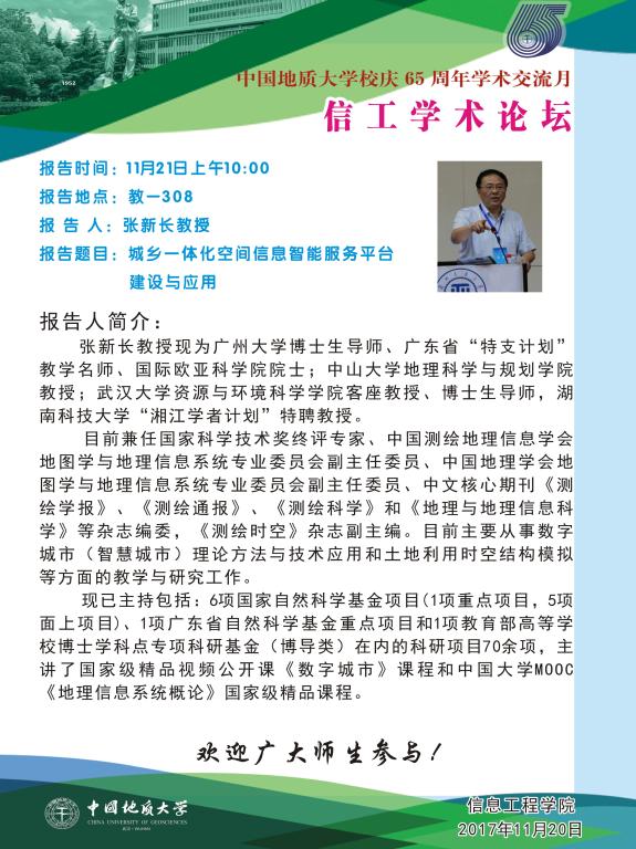 信工学术论坛第99期:张新长教授讲座——城乡一体化空间信息智能服务平台建设与应用