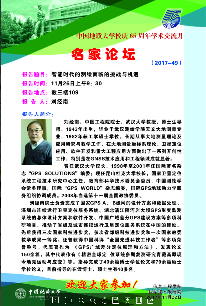 信工学术论坛第100期--名家论坛(主讲:刘经南)