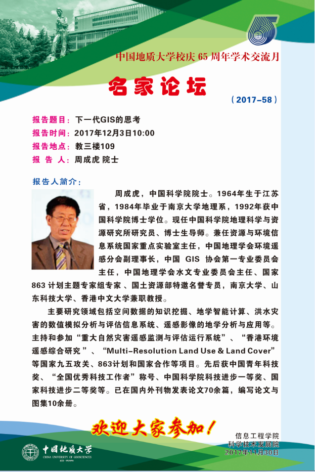 信工学术论坛第103期--名家论坛(主讲:周成虎)
