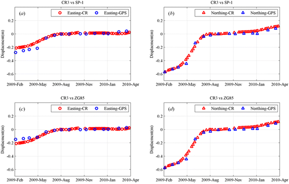 图2 本文获取的时序形变与GPS监测数据做比较