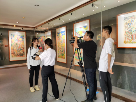 学生在云居寺接受北京广播电视台采访