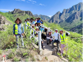 2023年7月6日至11日,金沙js4399首页周口店实习队在队长季军良和杨欢、温彦平、赵国松等老师的带领下,2020级地理科学专业42名本科生顺利完成了第4-8条野外路线的实习。路线4是八角寨-栓马桩中元古界和新元古界地层与沉积环境;路线5是一渡-十渡雾迷山组褶皱&断裂构造及河流地貌;路线6是韩村河村发展历史、产业规划与党建工作等;路线7是黄院新元古界和下古生界地层与沉积环境;路线8是官地-羊屎沟变质杂岩-盖层岩性及接触关系。这一阶段实习区气温依旧异常炎热,师生们顶着近四十度的高温以饱满的热情高质量地完成了每条路线的教学内容。相比实习初期,同学们适应高温的能力和耐力进一步增强,野外技能更加熟练,信手剖面图绘制、各种地质现象的素描、野簿记录等方面均有很大进步。7月10日室内整理阶段,老师们进一步给学生们讲解了实测剖面的方法和注意事项,并进行了实操演练,为后续实测剖面的顺利开展打好了基础。