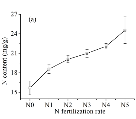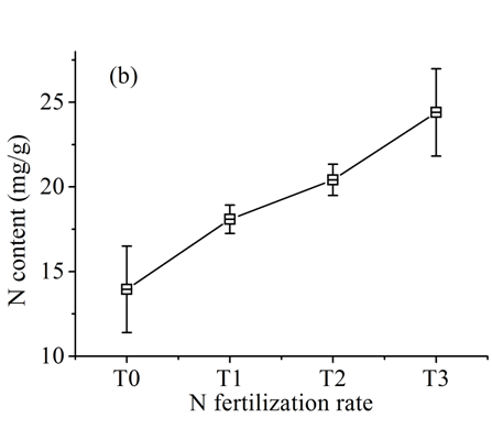 1:施氮水平对叶片氮含量的影响及变化关系.(a):2014;(b):2015。
