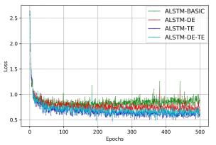 Here, ALSTM-BASIC is the model composed of the post words embedding component and the LSTM component. ALSTM-DE is the model that includes the post words embedding component, dictionary embedding component and the LSTM component. ALSTM-TE is the model composed of the post words embedding component, temporal information embedding component and the LSTM component. ALSTM-DE-TE is the model composed of all the components