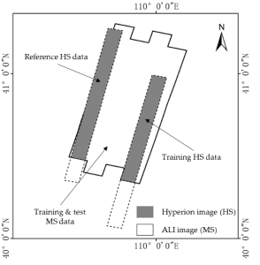高光谱遥感影像能够通过大量波段采集较大波长范围内精细的地表光谱信息。然而,当前被广泛应用的高光谱影像受到了覆盖面积限制,难以提供目标区域内时间密集且大范围的观测数据。例如,被广泛使用的高光谱传感器Hyperion采集影像的幅宽是7.5km,明显低于Landsat 8(185km),ALOS(70km),Sentinel-2(290km)等多光谱卫星数据。与高光谱卫星数据相比,多光谱卫星数据具有经济性、重访周期较高和积累了海量的长时间序列数据的优势。因此,本研究提出了一种基于非负矩阵分解的高光谱影像模拟方法,借助现有的多光谱影像生成更大范围的高光谱影像。这一方法能够扩展高光谱影像在土地利用分类、土壤环境监测和农业管理等领域的应用。