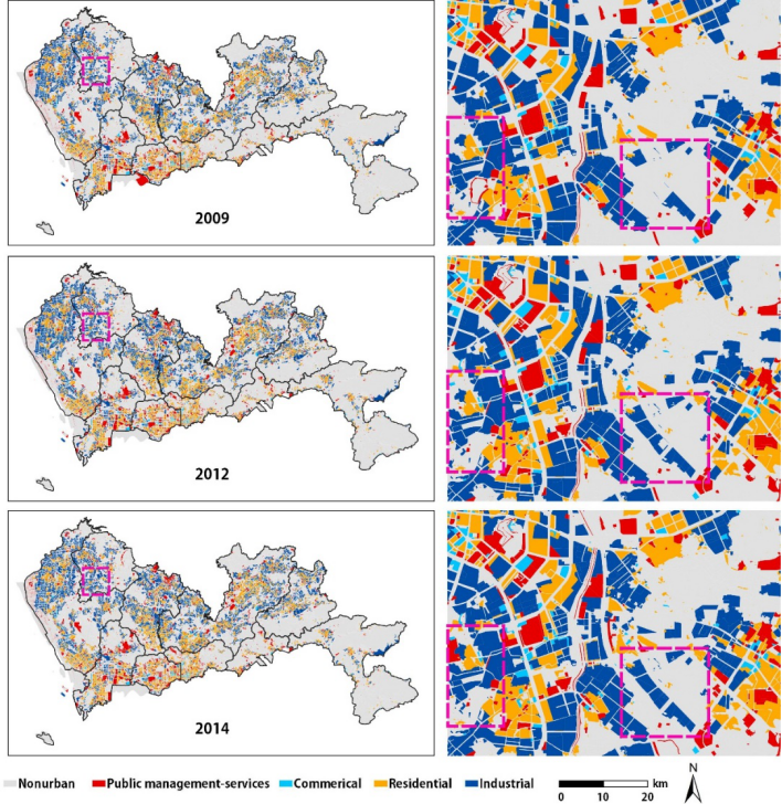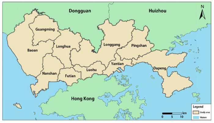 本研究将提出的CNN-VCA模型应用于广东省深圳市的土地利用变化模拟(图2)。深圳市是中国城市化程度最高的地区之一(图3)。
