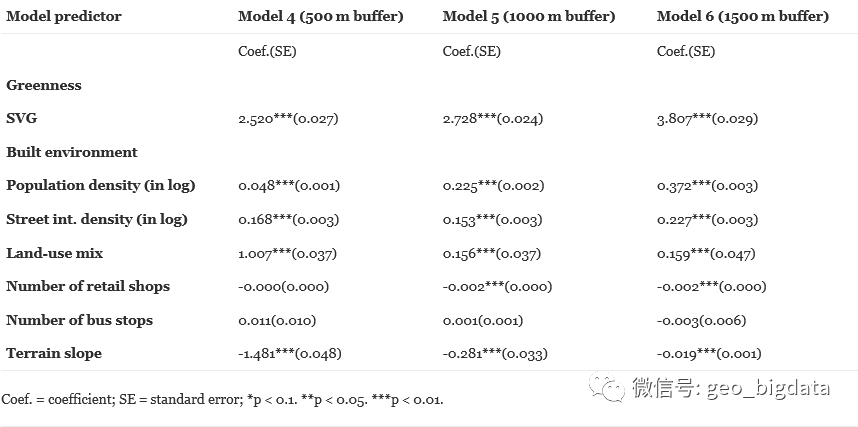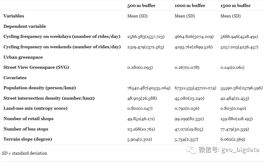 本研究首次基于浮动自行车数据和街景数据,系统地探讨了中国地铁站区域的绿地与骑行行为之间的关系。结果表明,视域范围内的绿化水平与工作日和周末的骑行频率呈正相关。此外,人口密度和公交车站数量与工作日和周末的骑行频率呈正相关。而在1000m和1500m的缓冲区中,零售店的数量与骑行频率呈负相关。