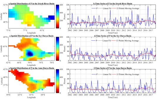 研究发现:(1) 降水对发源于天山山脉的额尔齐斯河流域、锡尔河流域、阿姆河流域的陆地水储量有一定的影响,但不显著(p>0.05);(2)中亚 CCDI与DSI、PDSI及SPI12相关性明显,说明CCDI可以被用来监测中亚地区的干旱事件;(3)基于CCDI研究发现,近年来额尔齐斯河、锡尔河和阿姆河流域的主要最严重的干旱分别发生在2012,2014和2014年。