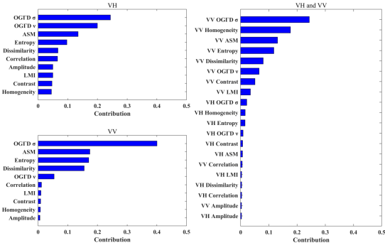 · 基于随机森林的特征重要性评价显示,所提出的OGΓD在所有特征中对结果的贡献最大,无论是基于单极化图像还是多极化图像。
