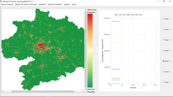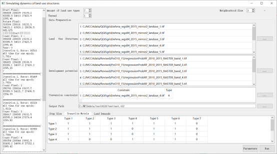 混合元胞CA模型的软件现已发布,包括完整用户手册和测试数据,供全球研究者免费下载。支持算法并行和模拟过程可视化(图8)。下载链接为:https://github.com/HPSCIL/Mixed_Cell_Cellullar_Automata 或 http://www.urbancomp.net/2020/07/25/mixed-cell-cellular-automata-mcca/
