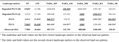 表3. PLUS模型模拟的景观指数与其他模型的景观指数进行对比