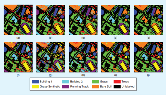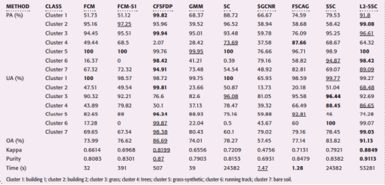 图2. 休斯顿大学影像各方法聚类结果 |