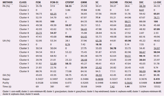 图1. 印地安纳影像各方法聚类结果 |
