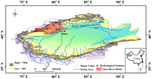 阿克苏河流域位于中国西北的塔里木盆地,由于属于温带大陆性气候,降雨量少,河流径流主要依靠冰雪融水补给,因此,阿克苏河流域农业发展以灌溉农业为主。近年来,阿克苏河流域农业用水量大幅增加,干旱事件一直困扰着全球变化下的社会经济发展。