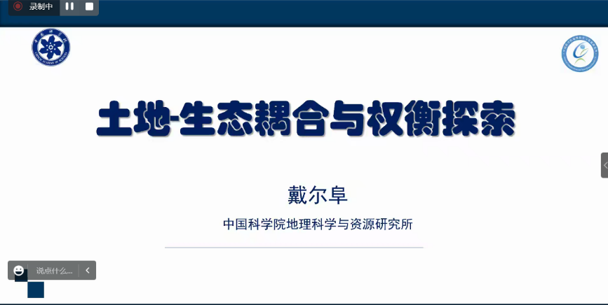 戴尔阜研究员从土地系统出发,基于主体建模(Agent-based modeling)的基本原理和人地关系下基于主体与环境相互作用的土地,利用变化模型的理论框架,对土地系统生态耦合权衡的研究成果进行了讲解,强调了土地利用与生态过程的重要性。该报告通过具体的案例模拟介绍了土地系统的模拟和生态系统服务权衡量化,从完整流域之间的对比以及子流域尺度等方面对该团队的工作进行展示。最后,戴尔阜研究员总结:土地系统和生态权衡确实是一个相互作用的界面,在土地系统里考虑景观格局和生态系统从而实现过程、服务与权衡的研究依旧是一个复杂的方向,且目前的研究还不够深刻。同时对中国地质大学(武汉)的成就加以祝贺,给地理与信息学院送来了祝福。