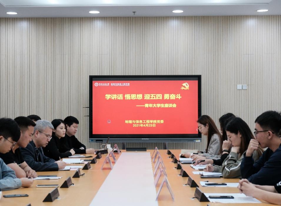 4月23日下午,我院组织召开“学讲话,悟思想,迎五四,勇奋斗”青年大学生座谈会。院党委书记许德华、党委副书记武彦斌、学工办全体老师以及学院学生干部代表参加此次会议。本次座谈会由学院团委副书记赵晓振主持。
