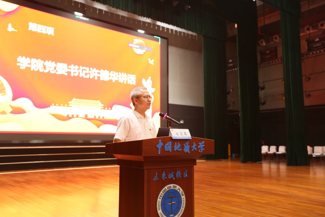 院党委书记许德华讲话。他介绍出席本次大会的青年教师代表,并鼓励广大青年学生以他们为榜样,努力学习,实现梦想。他以“志存高远,脚踏实地 为推动学院内涵式发展贡献青春力量”为题展开讲话,回顾我院成立至今的各项共青团工作,表示院党委对学院共青团工作的认可,也寄予厚望。他指出,要提高团的吸引力和凝聚力,关键是要高举理想信念旗帜。而共青团就要努力帮助广大青年树立远大理想,用伟大的目标感召青年,用光明的未来激励青年;团组织还需努力深入同学之中,努力做广大青年学生的贴心人,要成为广大青年遇到困难时想得起、找得到、靠得住的力量;广大团学干部要勤学善思,勇于担当。要在学习和实践中提高服务青年的本领与才干,要对工作充满激情,既要敢为且有所为,又要慎为且善于为,锐意进取,成长成才。