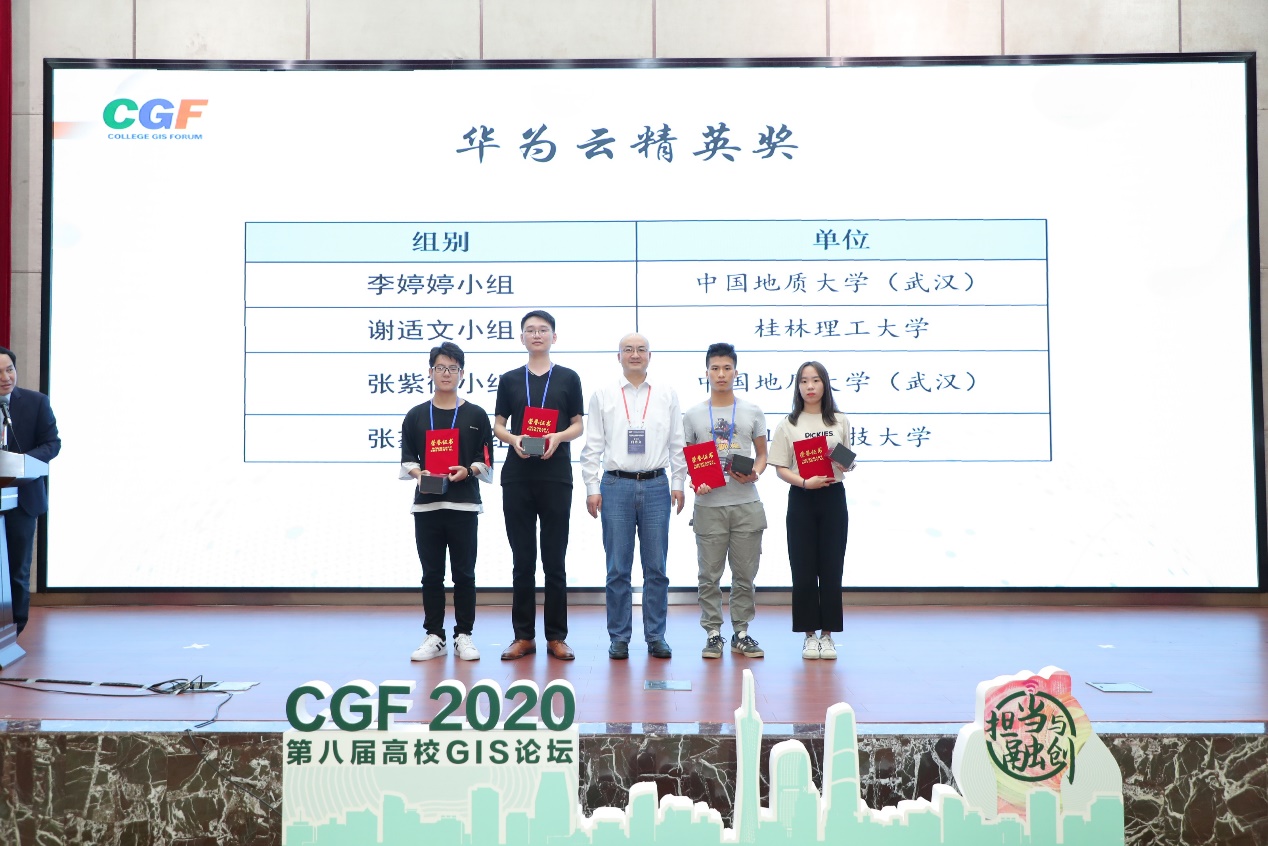 2020年11月03日,由中国测绘学会、自然资源部职业技能鉴定指导中心、工业和信息化部人才交流中心等单位共同主办的第十二届全国高校GIS技能大赛二次开发组(高级开发组)决赛答辩成功举行。在本次大赛中,来自全国众多GIS相关院校师生参加比赛。我院李婷婷、杨亚仑、盖涛、郑哲4位同学组成的团队,在郭明强老师的悉心指导下,经过长达6个月的准备与努力,最终该团队以优秀的作品《农查查》荣获大赛唯一的一项特等奖,并同时荣获了华为云精英奖,郭明强老师荣获“最佳指导老师”称号,使得我校再一次成功卫冕全国高校GIS技能大赛特等奖。