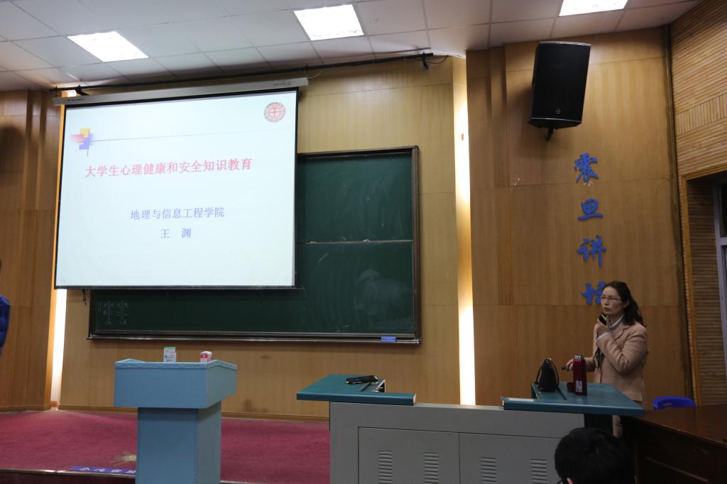 会上,王渊老师以大学生心理健康和安全知识教育为主题展开讲座。根据中国地质大学(武汉)连续数年新生普查数据显示,大学生心理健康问题主要由学习、人际交往、经济等方面原因造成。王渊结合实例从什么是心理健康和心理咨询、大学生心理障碍的鉴别、心理危机及实施心理危机干预的具体方法、学校心理危机干预体系等六个方面展开了讲解。同时提出,学生党员和学生干部要主动关心身边同学,将自助和他助相结合,呵护全体同学的心理健康。