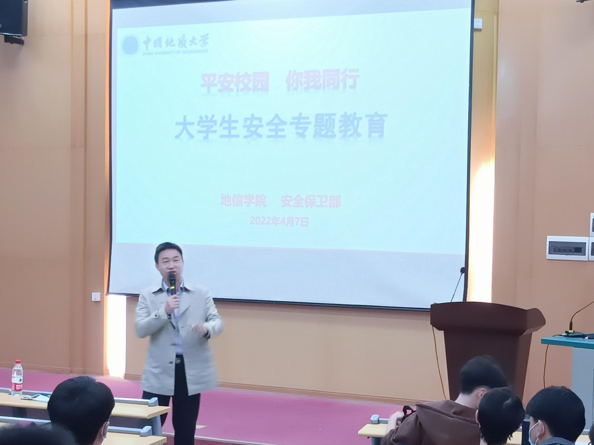 4月7日,为提高我院学生的安全意识和对大学学习生活的适应,学院在教三109召开2021级本科生年级大会。学校安全保卫部副部长彭冠军、彭红进,张涛,以及兼职辅导员胡昌宏、吴娜参加会议。会议由武彦斌主持。