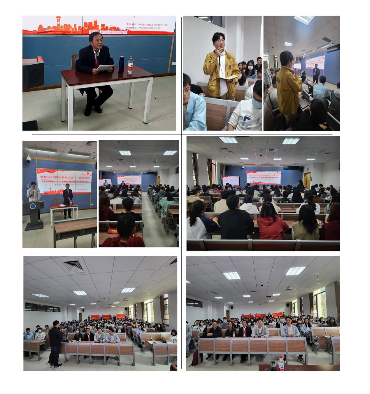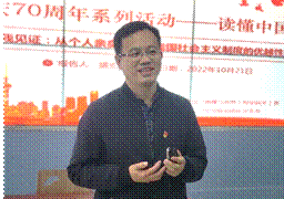 10月21日,为庆祝党的二十大顺利召开,迎接我校七十周年华诞,我院在未来城校区公教一113举办“读懂中国”暨迎校庆70周年系列活动。本次讲座邀请了我校原人文与管理学院退休教授盛宏模老师,讲座以“个人经历——历史责任”为主题。参与本次活动的有学院党委副书记武彦斌、环境遥感团队党支部、全球变化团队党支部和空间规划团队党支部党员和入党积极分子。讲座由空间规划团队党支部宣传委员杨立言主持。