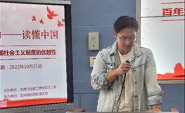 盛宏模老师从自己以及自己家庭在美国的亲身经历,对比了中美制度差异、文化差异和发展差异,更加证明了中国特色社会主义制度的优越性,更进一步凸显了中国共产党领导和中国特色社会主义制度的显著优势。最后,盛老师对大家寄予殷切希望,处于新时代的青年,应当更加奋发图强,居安思危,努力迸发更大的青春活力,为建成社会主义现代化强国而努力奋斗。