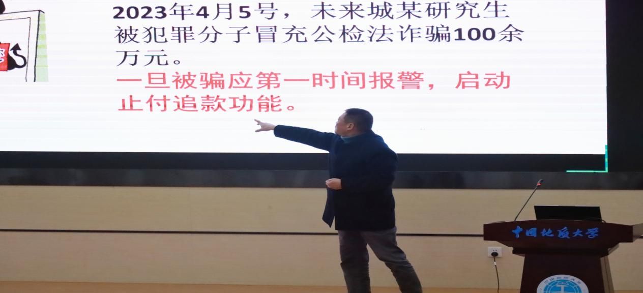 在“防骗”环节,张献文主任深入分析了接触性诈骗和电信网络诈骗等在现实生活中师生容易遭遇的诈骗类型。他结合大量真实案例和数据,生动展示了刷单返利、假冒身份骗取同情等诈骗方式的具体操作和防范方法。他嘱咐大家,要刻记“五不要”和“六一律”的防骗原则,以增强自我防范诈骗的能力。