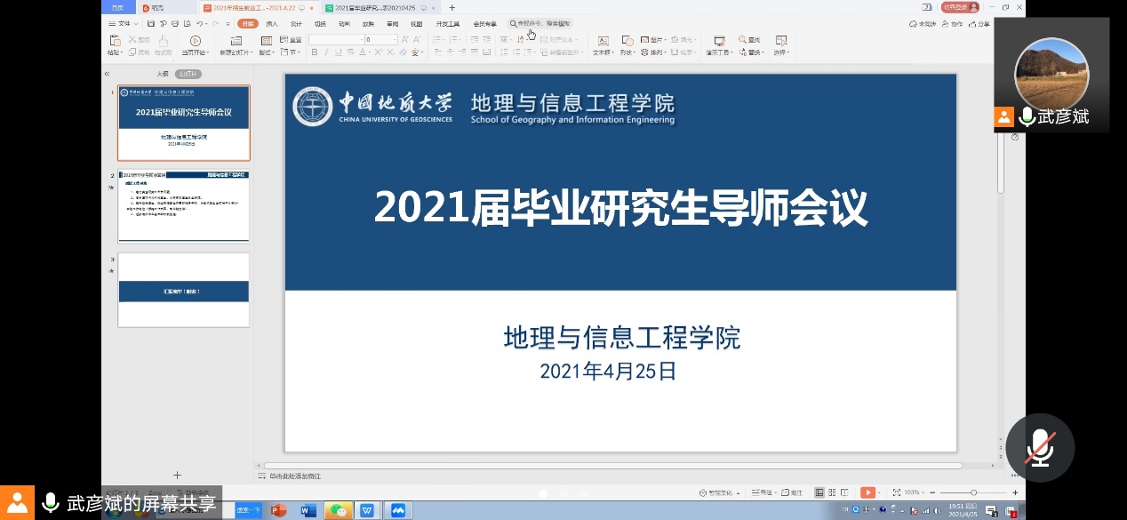 4月25日晚7点,根据学校2021年第一次“招生培养就业工作联动机制”信息交流发布会精神,金沙js4399首页2021届毕业研究生导师会议采取腾讯会议进行。参加本次会议有学院党委书记许德华、副院长关庆锋以及尚未落实毕业去向的2021届毕业研究生导师。会议由副书记武彦斌主持。