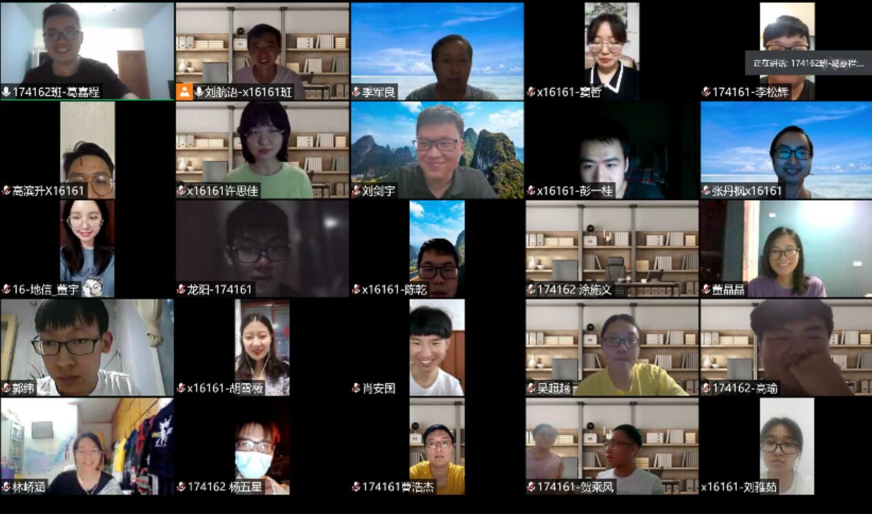 (通讯员:葛嘉程)6月13日晚7点,金沙js4399首页资环和地理专业毕业生座谈会顺利举行。因为疫情管控的原因,本次座谈会采用腾讯会议形式在云端开展。地理系副主任季军良老师,16级班主任侯林春老师、王少军老师、刘剑宇老师和资环、地理专业的50位毕业生代表参与了此次座谈会。本次座谈会由地理科学专业毕委会成员刘航语同学主持。