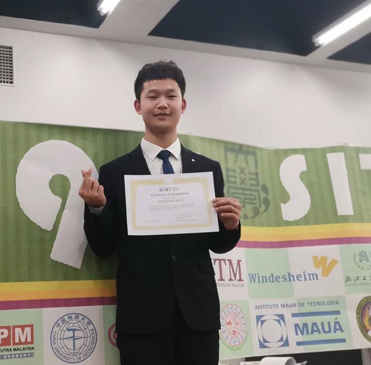 郭雲翔,男,汉族,中共预备党员,金沙js4399首页2016级信息工程专业本科生,兼修华中科技大学工商管理双学位。在校期间学习刻苦,获得伟志股份奖学金、院士奖学金、23rd FIRA RoboWorld Cup 2018, Pro., SimuroSot – RoboChallenge,second place等多项荣誉;并且担任基础科研、产学研以及国家级大创的负责人,2019年获得了中国地质大学(武汉)第30届科技论文报告会二等奖以及三个项目的结题证书,科研成果显著;2019年赴英国牛津大学、剑桥大学参与暑期项目,同年12月份赴日本芝浦工业大学参与奖学金CEP项目,均获得结题证书,积极参与国际交流,拓宽国际视野。现被苏黎世大学录取为硕士研究生。
